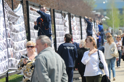 «В связи с тем, что в оргкомитет поступило значительно больше фотографий, чем планировалось – карточки с изображениями приходят до сих пор, оргкомитет принял решение напечатать еще несколько баннеров. Их разметили на фасаде школы Челябинского института музыки», – сообщили Агентству новостей «Доступ» в Общественной палате Челябинской области, выступившей одним из организаторов акции.