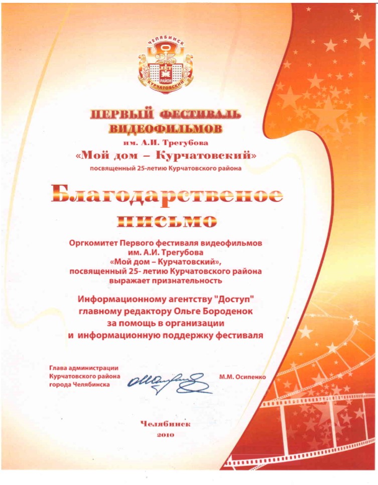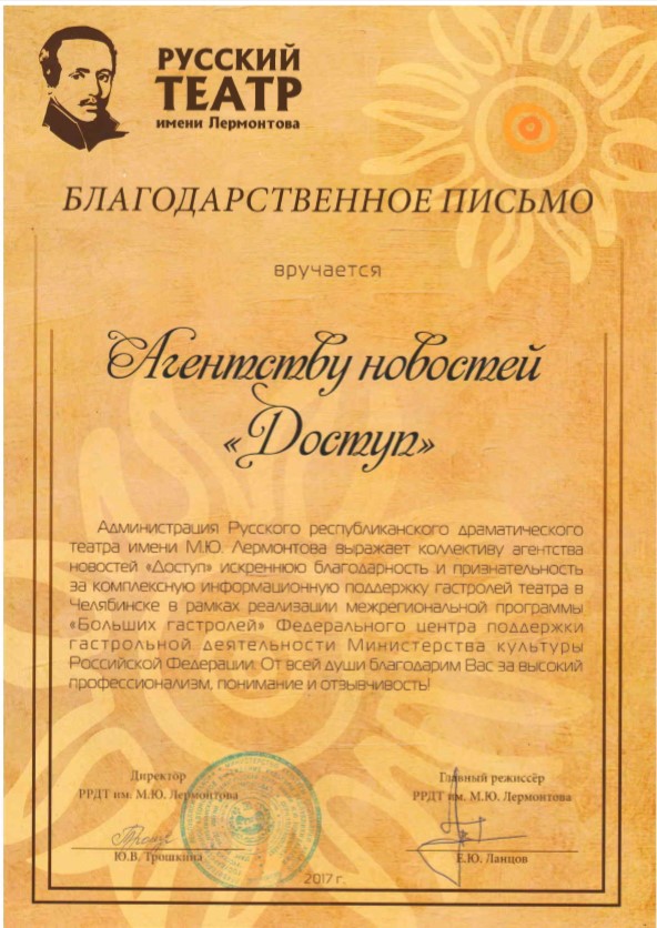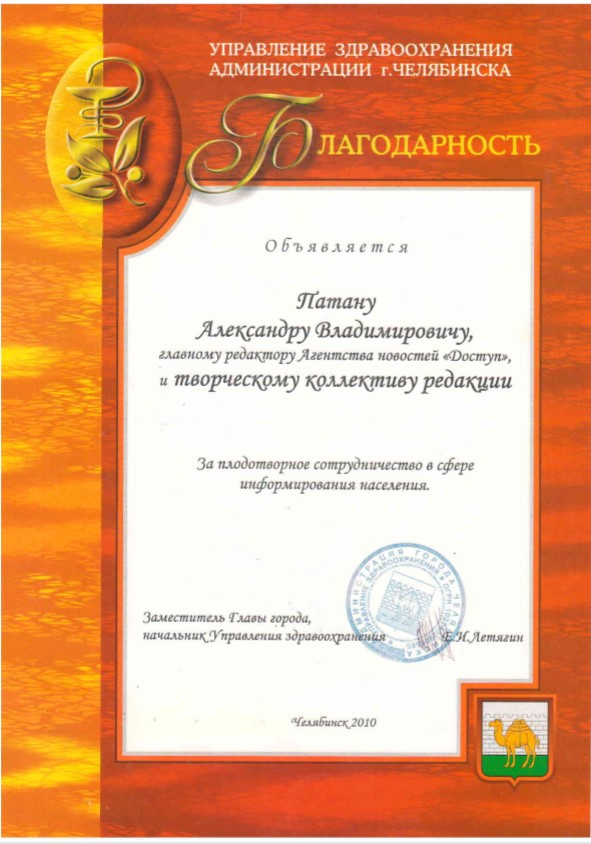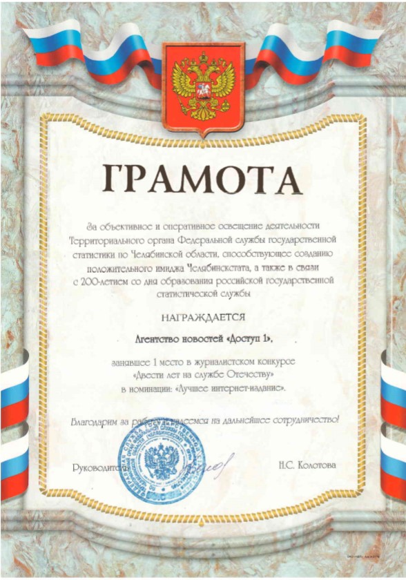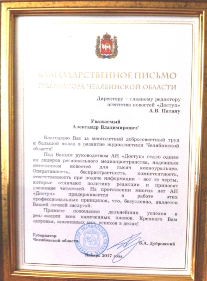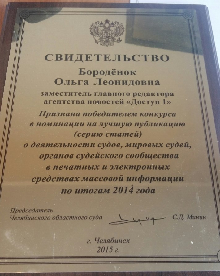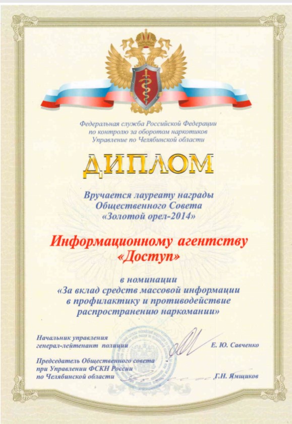 В 2014 году АН «Доступ» получило высшую общественную награду Челябинска – премия «Признание» вручена коллективу Агентства за вклад в развитие журналистики города и региона.