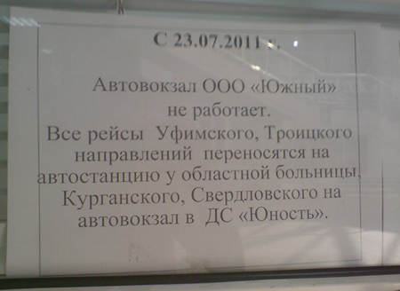 Отметим, что в настоящее время рейсы в Уфимском и Троицком направлениях, а также пригородные маршруты осуществляются от Областной больницы, в Екатеринбургском и Курганском – от дворца спорта «Юность».