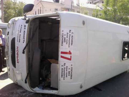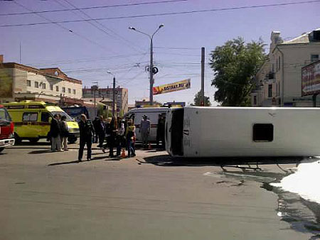 Напомним, авария произошла около 13.00 в среду, 16 мая. «Автобус Hyundai 17-го маршрута двигался в сторону поселка АМЗ, на перекрестке улиц Воровского и Доватора проехал на красный свет, столкнулся с праворульной Toyota и перевернулся», – передает корреспондент Агентства.