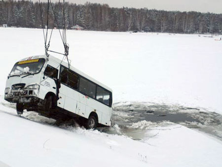 Сегодня, 3 декабря, в 12.00 в Центральном районе Челябинска произошло ДТП с участием маршрутного такси. Водитель автобуса Hyundai, двигаясь по автодороге плотины Шершневского водохранилища со стороны северо-запада в направлении улицы Худякова, не справился с управлением, совершил наезд на препятствие – ограждение моста, после чего выехал за пределы проезжей части и оказался на льду Шершневского водохранилища. В момент ДТП в салоне автобуса находилось восемь человек. Все пассажиры и водитель сумели самостоятельно выбраться из тонущего транспортного средства, до того как автобус ушел под лед.