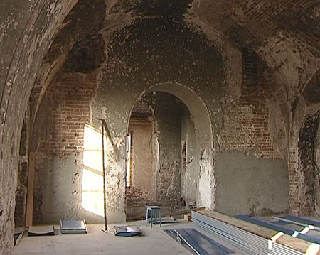 И вот уже видно преображение: заканчивается внешняя черновая отделка здания, внутри залит новый бетонный пол, готовятся к покраске стены. Жизнь на святой «стройке» заметна невооруженным глазом: кто-то поставил у оконной решетки баночки с живыми цветами.