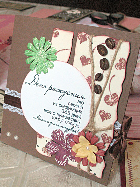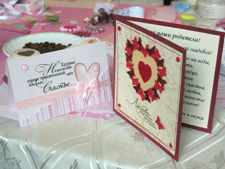 Как утверждает мастерица, для создания романтических открыток не нужно много денег и сил. Весь секрет – в оригинальной идее. Воплотить ее помогут необычные дыроколы с фигурными формами (у мастерицы таких уже семь), швейная машинка, принтер и самые привычные материалы из магазинов тканей, фурнитуры, канцелярии и модного ныне скрапбукинга, наборы для детского творчества и даже зерна кофе.