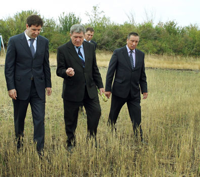 Губернатор также осмотрел посевы, пострадавшие от засухи. «В нынешнем году в районе засеяли 188 тыс. гектаров, из которых погибло от засухи 104 тыс. С пострадавших полей можно будет собрать один-два центнера фуражной пшеницы с гектара, которую далее пустить на корм. Радует, что прошедшие дожди, во-первых, ликвидировали очаги пожаров, а во-вторых, пропитали землю на 15 сантиментов», – пояснил Юревич.