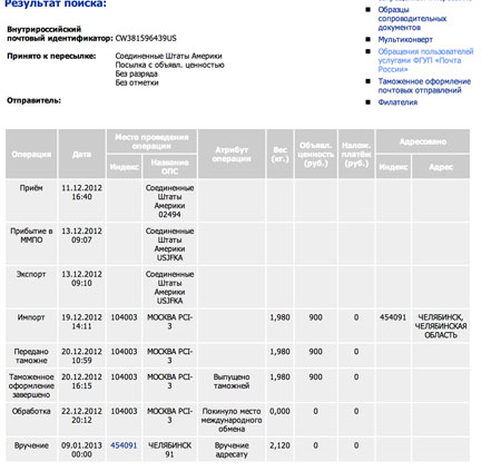 В результате все вышло, как сотрудники ведомства и сказали. Потерпевший русский «американец» писал и на официальный сайт Почты России, и на официальный сайт Таможни Домодедово, и на официальный сайт ФТС, а также в Генпрокуратуру РФ, Общество по защите прав потребителей и Роспотребнадзор.