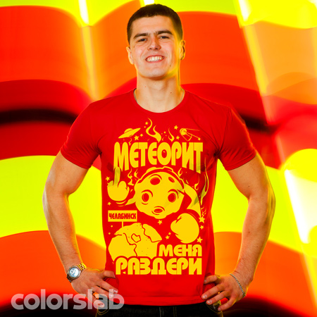 «Ранним утром 15 февраля 2013 года меня в панике будит отец и говорит: "Походу, в атмосферу вошел метеорит! Где фотоаппарат?" Я знал, что это возможно, но все же.. С такой точностью угадать.. Через три секунды был взрыв! И не стало нашего гостя с далеких планет! Зато теперь ваша яркая футболка "Челябинский Метеорит" покажет вашим друзьям и близким, что вас это событие зацепило!» – говорится на ресурсе, продающем одежду Colorslab.