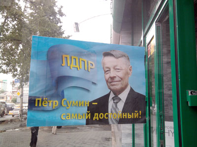 Южноуральские либерал-демократы не собираются снимать плакаты со своей символикой, изображением бывшего губернатора Челябинской области Петра Сумина и лозунгом «Самый достойный!», по крайней мере до тех пор, пока не получат официальный отказ от Сумина лично. Об этом Агентству новостей «Доступ» сообщил лидер ЧРО ЛДПР Олег Голиков.