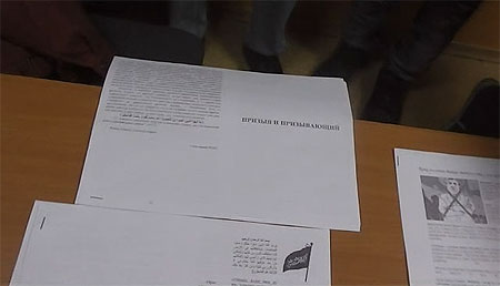 В ходе обыска штаба оппозиционеров, который совпал с проходившими там выборами в Координационное собрание, правоохранители обнаружили распечатки с материалами партии «Хизб ут-Тахрир», которые покоились в полиэтиленовой папке за шкафом.