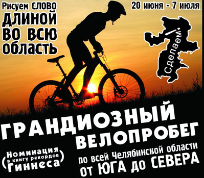 Велопробег примечателен тем, что его траекторией станет слово «Сделаем», которое собираются зафиксировать активисты на своих GPS. По замыслу организаторов, это увековечит событие в книге рекордов Гиннеса. Велосипедисты намерены преодолеть 2,1 тыс. километров, проехав все 43 муниципальных образования Челябинской области и посетив объекты мировой значимости – Аркаим, Саткинские Пороги, Зюраткульский Геоглиф, гробницу Тамерлана и Аллаки. Завершится экспедиция массовым велопарадом в Челябинске.