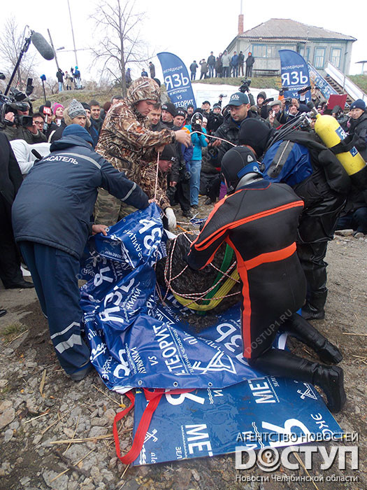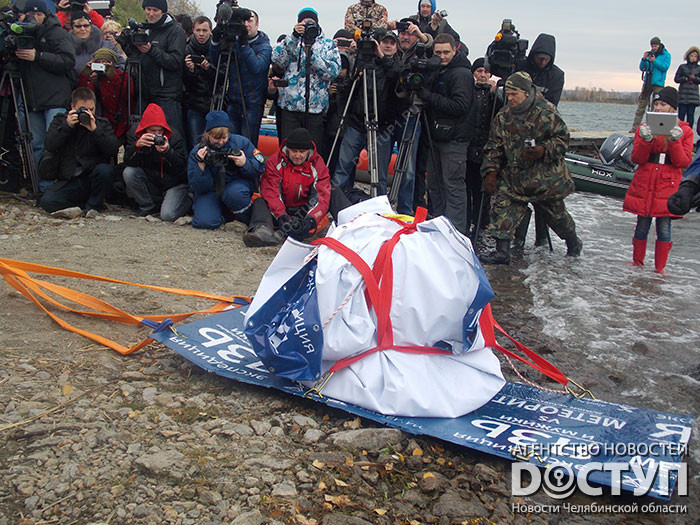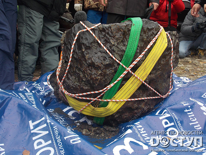 «Сначала камень подняли со дна, подтащили к берегу, положили на лист железа и уже с помощью лебедки вытянули на пляж. Видимо, от удара и транспортировки кусок раскололся на три части. Самый крупный фрагмент будет храниться в Краеведческом музее Челябинска», – рассказал глава региона Михаил Юревич, добавив, что операция обошлась региону в 1 млн 650 тыс. рублей. С подъемом работы на озере Чебаркуль завершатся.