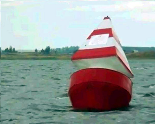 В середине июля 2013 года место, под которым покоится фрагмент небесного тела, обозначили памятным плавучим буем. Установка металлического знака, возвышающегося над уровнем воды на 1,5 метра, обошлась бюджету Чебаркуля в 50 тыс. рублей. Он имеет форму усеченной пирамиды и покрашен в принятые в международной морской навигации красно-белые цвета. Конструкция весит 320 килограммов. На месте падения небесного тела ее удерживает 14-метровая цепь со 120-килограммовым якорем. На одной из сторон знака прикреплена табличка, на которой указаны все данные о том, что упало в озеро 15 февраля 2013 года. Буй установили для привлечения туристов, однако первыми, кто проявил к нему интерес, стали местные вандалы. Уже на третий день они обстреляли металлический знак из охотничьих ружей.
