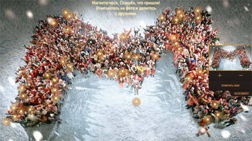 Жители Магнитогорска (Челябинская область), выстроившиеся в виде буквы «М» для комедии «Елки-3», могут найти себя на официальном сайте фильма – каждый из 700 участников акции имеет возможность не только увидеть свой портрет, но и подписать его, передает корреспондент Агентства новостей «Доступ».
