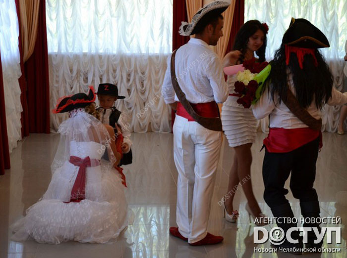 В Коркино (Челябинская область) молодая пара устроила пиратскую свадьбу – молодожены явились в ЗАГС в треуголках и кушаках, передает корреспондент Агентства новостей «Доступ» со ссылкой на пресс-службу администрации муниципального района.