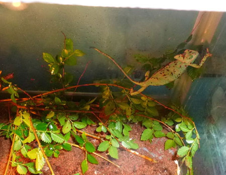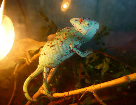 В фонде зоозащиты «Спаси меня» появился йеменский хамелеон. Хозяева не смогли прокормить животное, предпочитающее туркменских тараканов, и отдали его Карену Даллакяну. Челябинский ветеринар заказал новому питомцу насекомых по интернету и поселил его в террариум с ультрафиолетовой лампой, но утром гость пропал.