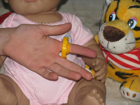 Сотрудники ПСО разобрали игрушку на части и аккуратно перекусили бокорезами пластмассовое колечко, сковавшее палец жертвы.