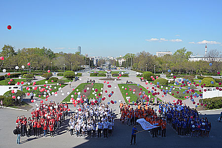 Уральские 11-классники в последней день учебы в школе пришли в УрФУ, чтобы поучаствовать в флэшмобе и узнать правила приема в вуз. Так, 320 уральских школьника изобразили на площадке перед университетом цифру «5 842», наглядно демонстрируя число бюджетных мест.