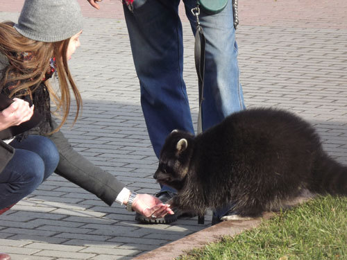 Для наглядности активисты привели одного из таких «шубных» животных – енотиху Элю, которая оказалась очень дружелюбной и охотно принимала из рук людей соленый арахис и кусочки яблока.