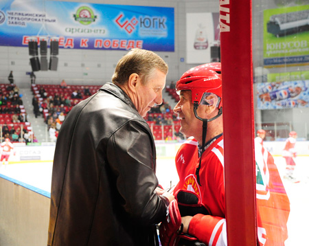 Также в Челябинск приехали олимпийские чемпионы Сергей Макаров и Сергей Мыльников, однако они руководили игрой «Легенд» со скамейки.