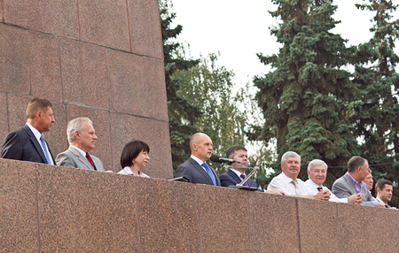 По проспекту Ленина до площади Революции прошли представители предприятий и учреждений, школ и вузов, спортивных и общественных организаций областного центра, а вместе с ними – символ чемпионата Европы по дзюдо-2012 Тигренок Жорик.