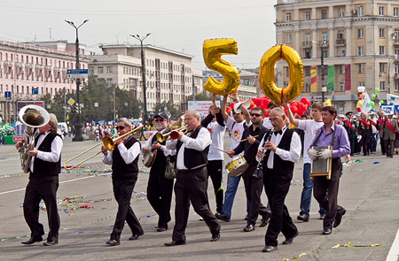 Темп шествию задали музыканты губернаторского духового оркестра под управлением Игоря Ежова.