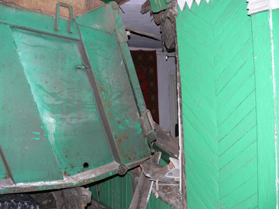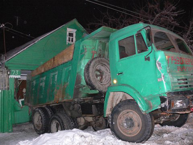 После наезда на Chevrolet водитель грузовика продолжил свой путь. Сотрудники ГИБДД задержали его уже в Советском районе, на улице Профинтерна, где он совершил еще одно дорожно-транспортное происшествие: двигаясь задним ходом, наехал на жилой одноэтажный дом и снес его стену.