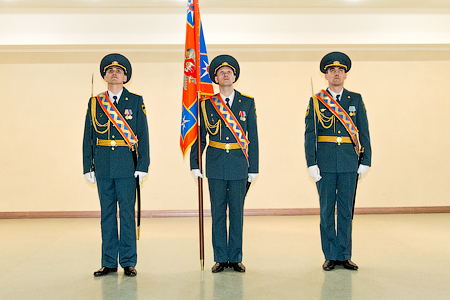 «В системе нашего министерства знамен не было вообще. Те боевые знамена, которые получала гражданская оборона, находясь в составе министерства обороны, переданы в центральный архив. И вот принято по инициативе нашего министра, прежде всего, одобрено геральдическим советом, утверждено указом президента положение о разработке и вручении знамен территориальным органам, вузам и постоянным воинским формированиям, входящим в систему МЧС. Не все субъекты России еще удостоены такой чести. На Урале Свердловский и Челябинский Главки – первые», – рассказал начальник Уральского регионального центра МЧС России генерал-лейтенант Юрий Нарышкин.
