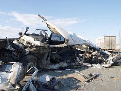 «Авария произошла в среду, 21 марта 2012 год, в Калининском районе в 15.35 на улице Героев Танкограда, 46-П. Водитель Mercedes E200, 40-летний мужчина, столкнулся с двигавшимся в попутном направлении автомобилем ВАЗ-21053. После этого ВАЗ выехал на встречную полосу и врезался в мусоровоз МАЗ», – говорится в сообщении.