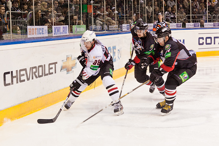 После того как первые 20 минут дополнительного времени прошли без заброшенной шайбы, полагаем, что многие вспомнили о рекордных 108.54 минутах игры с «Ак Барсом». Вот только нового рекорда команды не установили. На 86-й минуте Никита Пивцакин принес победу «Авангарду». Опять ошиблись защитники «Трактора», не уследившие за омичем, который расстрелял ворота Гарнетта после того, как тот отбил бросок Александра Попова. Итоговый счет 3:2 в пользу гостей.