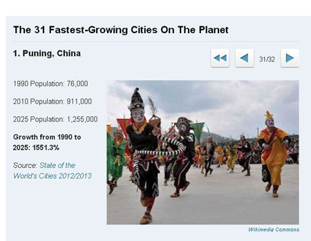 Для сравнения в китайском городке Пунинг прирост населения к 2025, согласно уже имеющейся статистике, должен составить 1 551%. С 75 тыс. человек городок разрастется до 1 млн. 255 тыс. человек.