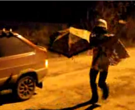 «Герой» в семейных трусах с изображением Спанчбоба, надетых поверх трико, майке-алкоголичке с буквами СК на груди, валенках, со строительной каской на голове и зонтом в руках готов по первому зову прийти на помощь всем, кто окажется в беде, будь то просто заглохшая машина или появившийся в темном переулке хулиган.