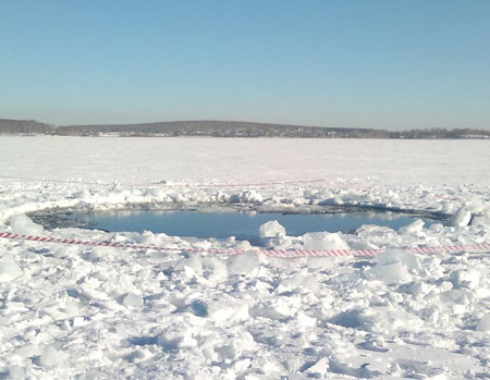 Возле полыньи на озере Чебаркуль в Челябинской области, куда предположительно упал метеорит, сделана первая находка – обнаружены мелкие обломки твердого вещества, передает корреспондент Агентства новостей «Доступ» со ссылкой на данные регионального управления МВД.
