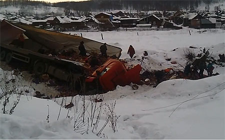Пока спасатели доставали погибших водителей из покореженных машин, жители ближайшего населенного пункта, не теряя времени, принялись разбирать из фур товар.