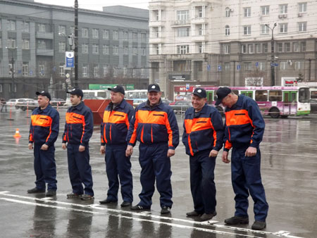 На площади Революции свое мастерство на пятитонных КамАЗах демонстрировали шесть лучших водителей мусоросборочных машин. Шоферы соревновались в фигурном пилотаже, в который вошли езда «змейкой» между разметочными конусами, «габаритный коридор», ежедневно выполняемый водителями мусоровозов в условиях крохотных дворов, и «парковка».