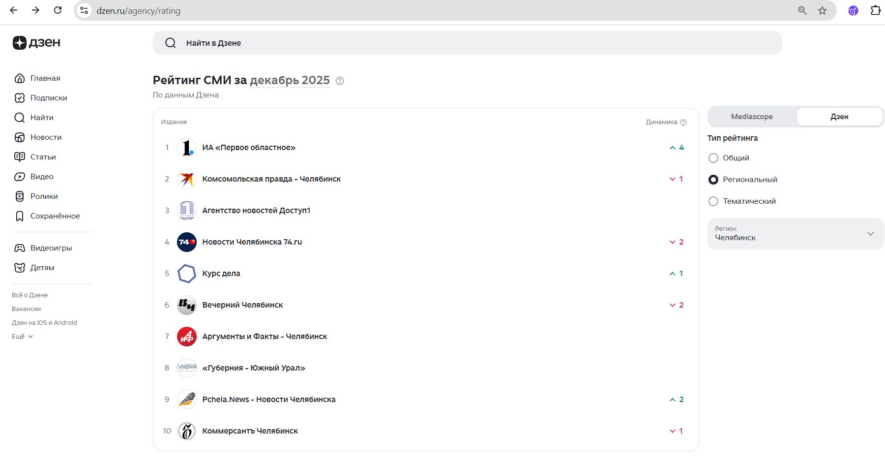 Входит в топ-5 по посещаемости среди СМИ Челябинской области по рейтингу Яндекс.Дзен (https://dzen.ru/agency/rating).