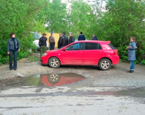 Семь человек перегородили дорогу строителям к берегу реки Миасс в Челябинске – горожане выступают против вырубки деревьев в сквере под окнами своих домов, передает корреспондент Агентства новостей «Доступ».