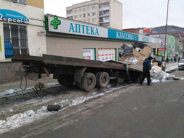 Напомним, крупное ДТП произошло сегодня, 15 ноября, утром. «В 08.05 мужчина 1967 года рождения, управляя грузовым автомобилем Foton, при неустановленных обстоятельствах, двигаясь на спуске, совершил наезд на административное здание по адресу: улица Калинина, 2. После удара о здание большегруз продолжил движение по тротуару, где совершил наезд в столб», – рассказали в Госавтоинспекции.