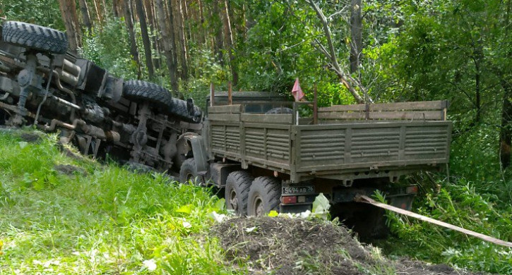 Два военных «КамАЗа», следовавшие в Челябинск, улетели в кювет на трассе «Урал»