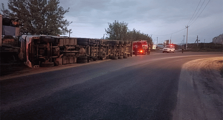 Грузовой автомобиль опрокинулся на повороте в Челябинской области, передает корреспондент Агентства новостей «Доступ».