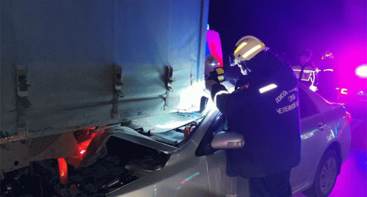Там Toyota Corolla оказалась под прицепом впереди идущей фуры. В салоне на момент аварии находилось два человека.