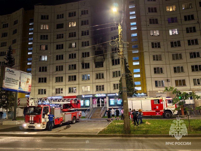 Огонь вспыхнул в трехкомнатной квартире на четвертом этаже дома по Комсомольскому проспекту, частично перекинулся на оконный блок квартиры на пятом этаже.