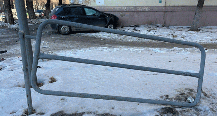 После столкновения иномарки выехали за пределы проезжей части, повредив пролет удерживающего пешеходного ограждения.