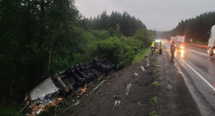 ДТП произошло сегодня, 8 июля, на 1651 км дороги Москва – Челябинск. Водитель, личность которого устанавливается, на автомобиле КамАЗ с прицепом выехал за пределы проезжей части влево, где совершил наезд на металлическое барьерное ограждение, повредив его, с последующем опрокидыванием в кювет.
