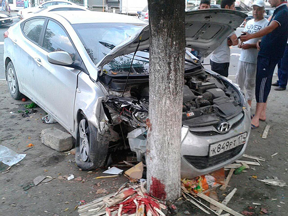 Как сообщили в пресс-службе ГУ МВД региона, за рулем иномарки находился 35-летний мужчина. От удара Hyundai изменил направление движения и наехал на бордюрный камень, три пролета барьерного ограждения, торговую палатку и дерево.