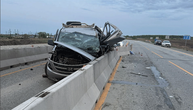 Под Челябинском микроавтобус с пассажирами влетел в бетонный блок, передает корреспондент Агентства новостей «Доступ».