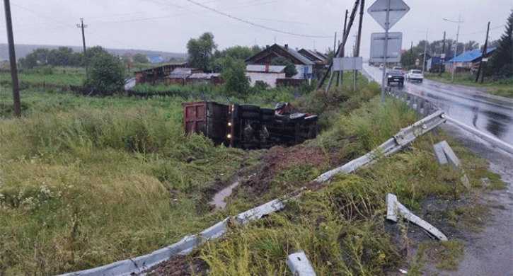 По информации полиции, 25-летний водитель Howo при повороте не справился с управлением, совершил съезд в кювет, где транспортное средство опрокинулось.