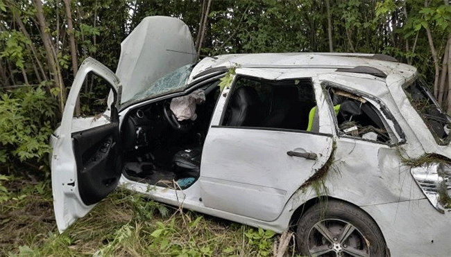Водитель ВАЗа (Lada Kalina) не справился с управлением и съехал в кювет. Пострадали мужчины 50 и 62 лет.