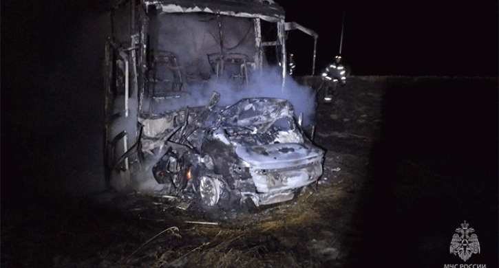 Под Челябинском таксист уснул за рулем, врезался в автобус и сгорел заживо