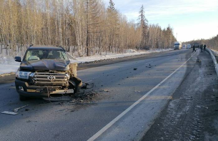 После столкновения Land Cruiser выбросило на встречную полосу, где он врезался во встречный большегруз Mercedes Benz.
