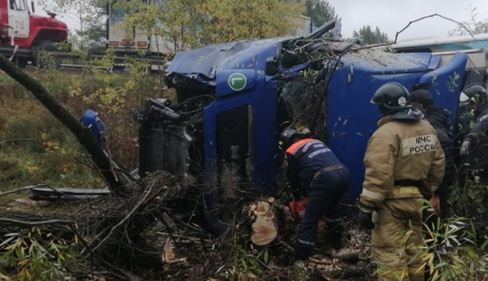 «В результате ДТП водитель получил множественные травмы и оказался заблокирован в деформированной кабине между стволом дерева и шасси грузовика. Врачам обеспечили экстренный доступ к пострадавшему через люк», – добавили в ПСС.