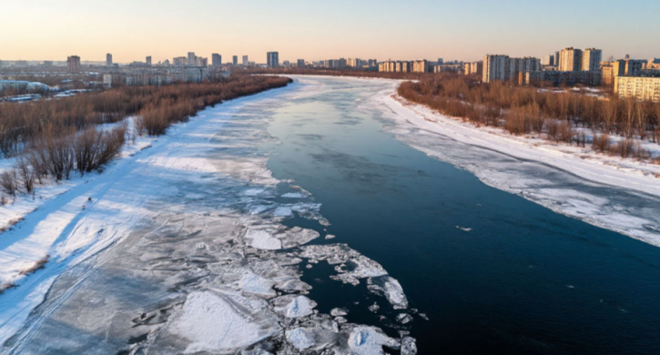 Из-за увеличения сбросов воды с водохранилищ и повышения среднесуточных температур воздуха на реке Урал началось разрушение льда, но полного таяния ещё не произошло.